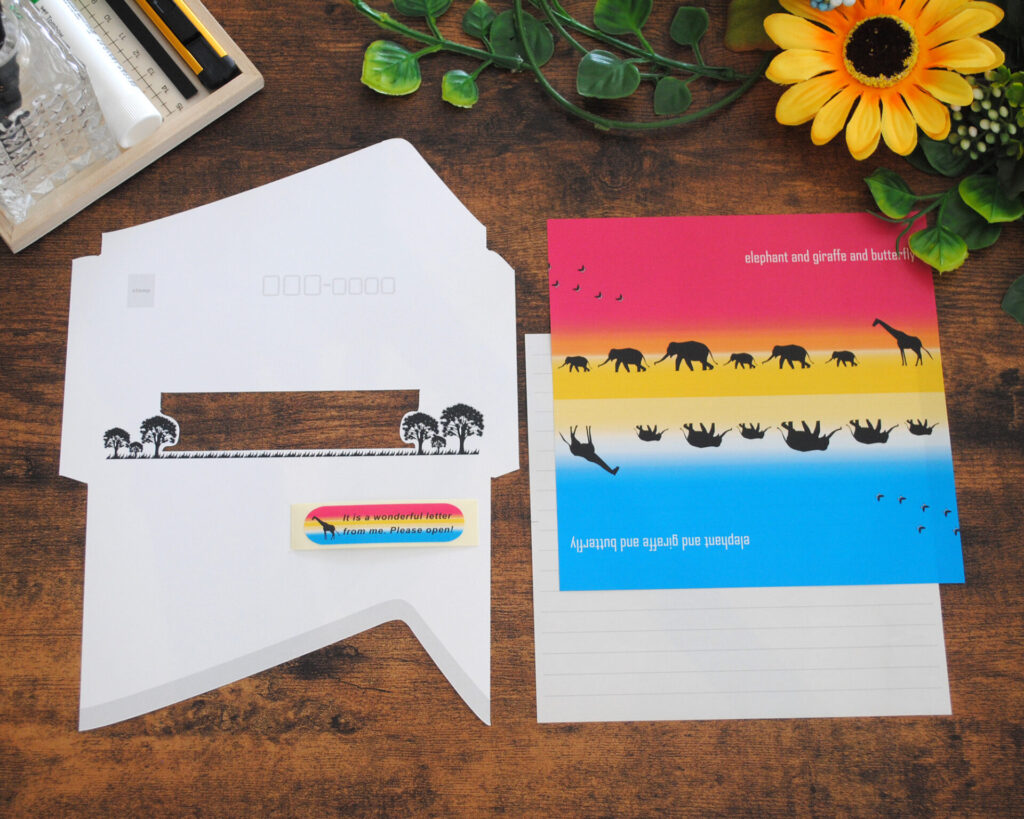 一般のレターセットのように好みの柄だけを選ぶのではなく、専用封筒との組み合わせを考えて出来るシーンを創り出す楽しさがあり、その仕掛けは「手紙を送る人も、手紙を貰う人」も笑顔になれるオリジナルレターセットです。