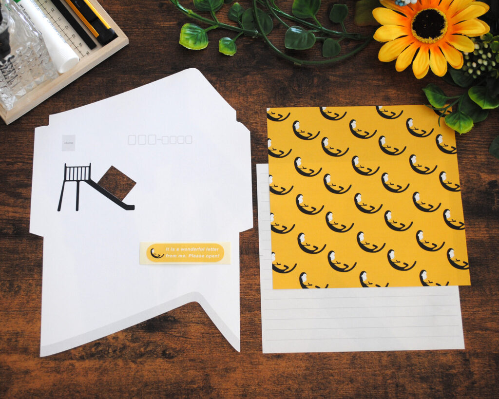 専用封筒に専用の絵柄紙を入れることで、封筒のイラストと絵柄で1つのシーンが完成するオリジナルレターセットです。