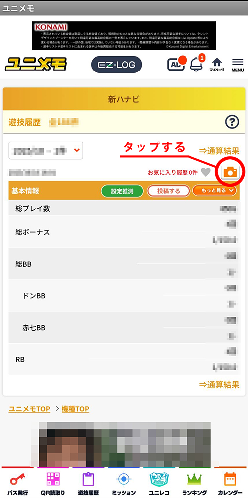 新ハナビの遊技履歴画像をユニメモアプリからダウンロード(DL方法は下図参照)
